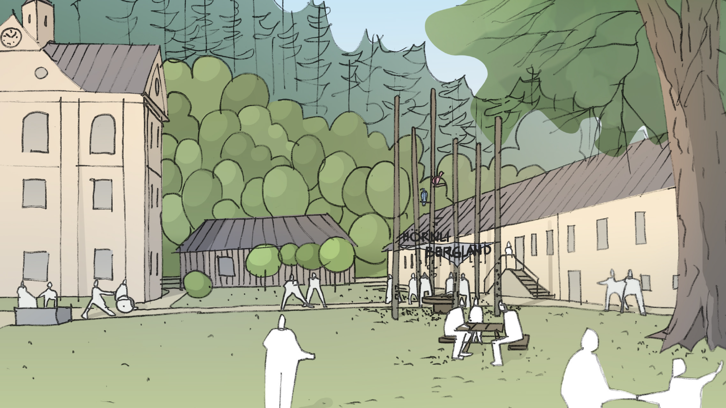 Mit der «Waldlichtung» werden spannende Themen rund um das Hörnli-Bergland nicht nur präsentiert, sondern inszeniert. Im Mittelpunkt steht das Potenzial der Region als facettenreiches Naherholungsgebiet. Sinnliche und interaktive Elemente in und um die Baumstämme, wie Klanginstallationen und ein Quadroskop, ermöglichen es den Besuchenden, die vielfältige Berglandschaft mit ihrem abwechslungsreichen Lebensraummosaik näher kennenzulernen. Eine Karte des Gebietes verdeutlicht die einzigartigen Eigenschaften und Angebote, die die Region zu bieten hat.
